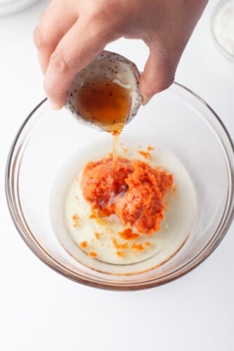 3. In another bowl, whisk the vanilla, pumpkin, oil, eggs, maple syrup, and yogurt.