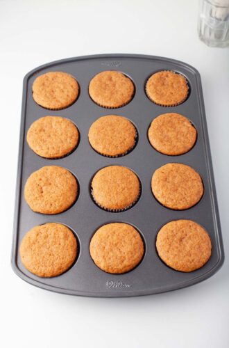 6. Bake for 20 – 25 minutes, or until a toothpick comes out clean. Once ready, remove them from the oven and let cool for 10 minutes before removing them from the pan.