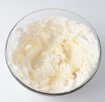 1. In a medium bowl, using an electric mixer, mix the cream cheese with the butter until soft and smooth.
